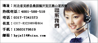 地址:河北省吳橋縣桑園鎮(zhèn)開(kāi)發(fā)區(qū)燕山道西側(cè) 熱線(xiàn)電話(huà):4001-588-518 郵編:061800 電話(huà):0317-8323988 傳真:0317-8323991